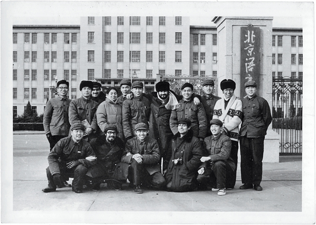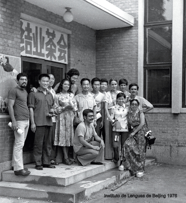 1976. El autor (tercero a la izq. de la última fila) está junto a sus compañeros ante la puerta principal del Instituto de Lenguas de Beijing (actualmente Universidad de Lengua y Cultura de Beijing).