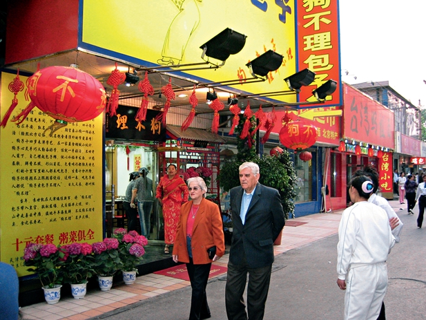 Abril de 2004. Los padres del autor pasean por una calle de Beijing durante su última visita a la capital china.