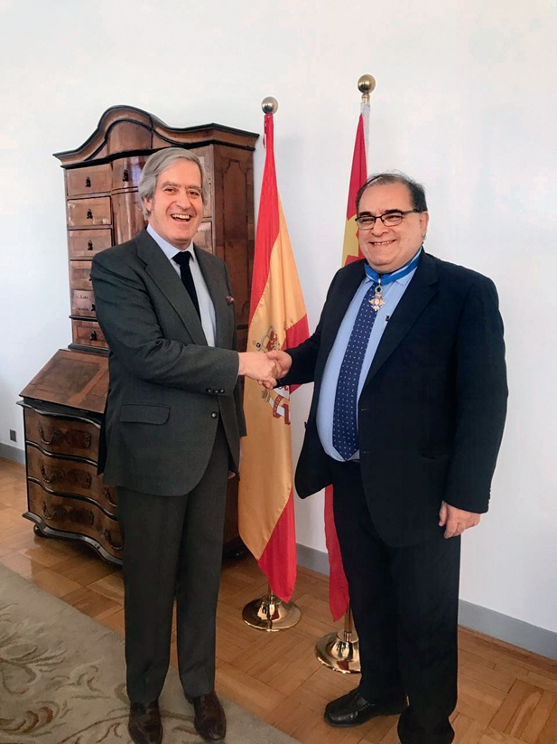 2016. El autor recibe del embajador de España en China una medalla especial por su excelente contribución a los intercambios entre los dos países.
