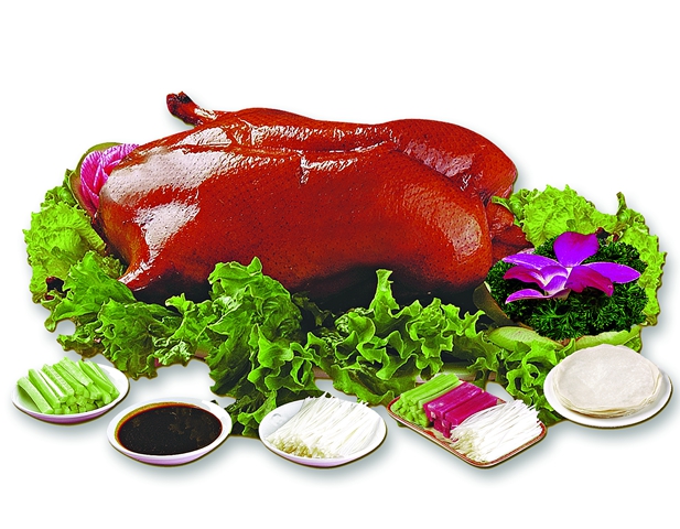 El pato recién horneado tiene un color rojo oscuro y brilla como si estuviera laqueado. Hay que cortarlo en rebanadas, cuyo número ideal es de 108, en forma de hojas de sauce. Debe servirse caliente y rebanarlo frente al cliente.
