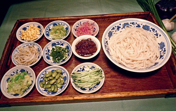 Zhajiangmian y sus ingredientes.