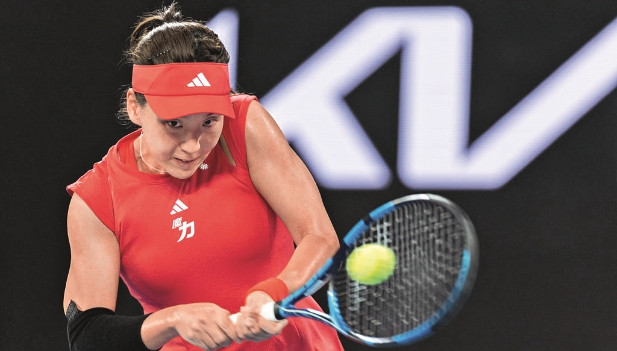 12 de enero de 2025. La tenista china Wang Xinyu devuelve un golpe durante su partido de primera ronda individual femenino del Abierto de Australia 2025 en Melbourne, donde perdió 0-2 ante la española Paula Badosa.