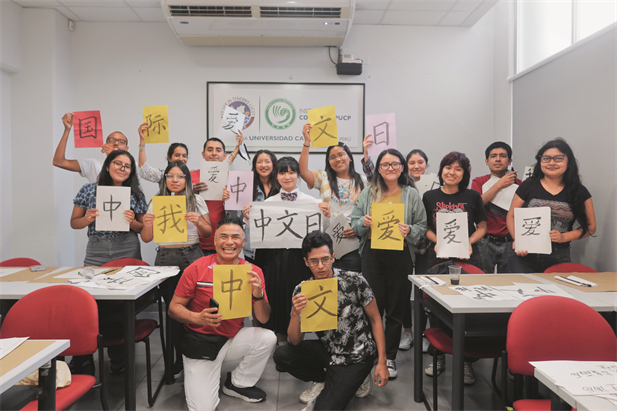 Estudiantes del Instituto Confucio de la Pontificia Universidad Católica del Perú practican la caligrafía china y aprecian la belleza de los caracteres chinos, en el 14.o Día de la Lengua China en las Naciones Unidas. Instituto Confucio de la Pontificia Universidad Católica del Perú Practicantes de la cultura china Perú cuenta con cuatro institutos Confucio –dos en la capital, uno en el norte del país y otro en el sur– que han servido para difundir la lengua y cultura chinas. Ma Zheng, directora del Instituto Confucio de la Universidad de Piura, en el norte de Perú, lleva más de diez años enseñando chino mandarín. Según cuenta, los alumnos peruanos tienen nociones generales sobre China relacionadas con su larga historia, la diligencia de su pueblo y su deliciosa comida. Pero además de ello, China se ha convertido en una potencia mundial con una avanzada tecnología y un gran crecimiento en la actualidad. Desde que el Instituto Confucio de la Universidad de Piura lanzó el curso “Introducción a la cultura china” en 2013, muchos estudiantes peruanos se han ido familiarizando más con el país. Han aprendido sobre algunas artesanías tradicionales, como el recorte de papel, el cual es muy apreciado por el pueblo chino y suele ser utilizado como decoración durante la Fiesta de la Primavera; el taijiquan, un arte marcial que se ha convertido en un ejercicio físico diario para la gente; o bien, sobre los caracteres chinos, los cuales no solo gozan de una historia de miles de años, sino que también revelan parte de la estética y la filosofía chinas. Ma Zheng siente un gran grado de satisfacción por ser una vía para que los alumnos peruanos logren comprender mejor la esencia de la cultura china más allá de cuestiones superficiales, así como por estimular su interés por la cultura china y su curiosidad por la diversidad cultural. Según Zhao Lihong, directora del Instituto Confucio de la Pontificia Universidad Católica del Perú, en los 14 años desde que abrió sus puertas, el instituto ha recibido a más de 5000 estudiantes. De estos, casi 4000 han tomado las clases para alumnos mayores de 14 años. La mayor parte de este grupo está compuesto por estudiantes universitarios y el 30 % ya se encuentra trabajando, principalmente en empresas chinas o en el comercio chino-peruano. Las clases para niños comienzan a partir de los 5 años. En este caso, las razones para aprender chino varían, pero la mayoría coincide en que aprender chino puede ayudar a su desarrollo académico y profesional en el futuro. Zhao señala que el instituto también organiza cerca de un centenar de actividades culturales cada año, con el objetivo de promover la cultura china. Las clases de recorte de papel, caligrafía, nudos chinos y canciones chinas siempre se llenan, ya que los alumnos están muy interesados en conocer la vida, los pasatiempos y las tendencias de moda de la juventud china. Muchos de ellos esperan con ansias tener la oportunidad de poder visitar o vivir en China.