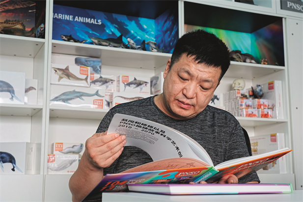 1 de noviembre de 2023. Zhao Chuang hojea su más reciente libro en Beijing. Wang Ruohan