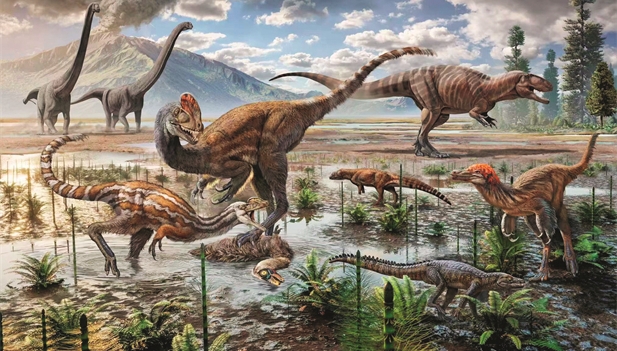 El dinosaurio en el centro llamado Shishugounykus, que fue ilustrado por Zhao, vivió en la actual región autónoma uigur de Xinjiang, en el noroeste de China, hace 170 millones de años. Foto de cortesía Zhao Chuang es un artista científico de 38 años que trabaja en Beijing. Su labor de ilustrador une la ciencia y el arte al pintar y esculpir especies extintas antiguas basándose en la información recopilada de los fósiles. De esta manera, él reproduce cada elemento descrito en artículos paleontológicos de manera artística. Por ende, su lógica e imaginación llenan los espacios en blanco en la investigación científica. A raíz de sus habilidades, Zhao es un colaborador ideal para muchos paleontólogos, museos y editoriales. Su pintura de un mamífero volador prehistórico se convirtió en la portada de la destacada revista científica británica Nature en 2006, un punto glorioso en su carrera. Diez años después, trabajó con el Museo Americano de Historia Natural por su exposición centrada en los vínculos entre los dinosaurios y las aves. El paleoartista, que ha pintado miles de animales prehistóricos, está acostumbrado a crear sus obras durante la noche y, a menudo, duerme solo cuatro horas al día: se acuesta alrededor de las 6 de la mañana y se despierta a eso de las 10. “Recrear esas criaturas antiguas es arduo y me hace sentir como si estuviera lidiando con 4600 millones de años de vida en la Tierra”, añade el artista, quien asegura que seguirá profundizando en la historia de nuestro planeta, aunque pintar una imagen completa del mismo sea una misión imposible. Un romance de la infancia Zhao comenzó pintando dinosaurios cuando era niño. “¿Recuerdas la primera vez que viste un dinosaurio? La primera vez que los ves, es como un milagro”. Estas líneas de la película de 1997 The Lost World: Jurassic Park describen perfectamente el encuentro inicial de Zhao con los dinosaurios. Cuando era un estudiante de segundo grado en la escuela primaria, sus padres le compraron Cien mil porqués (One Hundred Thousand Whys), una popular serie de libros de ciencia chinos destinados a niños. En las páginas que describen la evolución biológica, el niño vio un Tyrannosaurus rex y se sintió atraído por su representación: medía 15 metros de largo, pesaba 6 toneladas, vivió hace 88 millones de años y fue uno de los animales más poderosos que jamás haya caminado por la faz del planeta. Estas figuras iban acompañadas de una ilustración sencilla, pero que le cautivó. A partir de ese momento empezó a leer más sobre los dinosaurios, a escribir ciencia ficción, a pintarlos, e incluso tardó tres años en crear su propio libro sobre dinosaurios. En ese momento, su sueño era escribir un libro específicamente sobre los dinosaurios que una vez habitaron China, lo cual pudo hacer realidad el año pasado. Además, en su estudio en las afueras de Beijing, el número de sus “dinosaurios” en algunos puntos supera los 100, lo que crea una vista espectacular. Ciencia y arte Para él, los dinosaurios son elegantes. “Tienen cuellos y colas largos. Sus piernas son delgadas. Cuando caminaban, la fuerza se transmitía desde los pies a la pelvis, y luego a los costados del cuerpo, y este equilibrio debe haber sido muy hermoso”. Han pasado casi 20 años, pero todavía disfruta al pintar estas criaturas desaparecidas hace mucho tiempo. Dice que leer materiales de investigación sobre ellas es el aspecto que más tiempo consume de su trabajo. Generalmente, crea un borrador en papel que establece las dimensiones y características de cada animal, mientras que el siguiente paso es recrear su esqueleto y luego sus músculos. Hoy en día, puede escanear toda la estructura ósea de un dinosaurio en una computadora y agregarle músculos usando un software. El modelo digital resultante se imprime con tecnología de impresión 3D y puede usarse como modelo para pintar o como base para producir un modelo. “Dibujamos los músculos y huesos de los animales siguiendo principios biológicos”, explica Zhao, quien añade que muchas de las formas en que se mueven los dinosaurios en las películas serían imposibles en la realidad. A continuación, crea la piel del modelo, lo que incluye agregar colores, pelaje o escamas, patrones y texturas. Esta etapa requiere que el artista haga uso de su imaginación y lógica, ya que muchos fósiles no proporcionan esos detalles. Al ilustrar, a menudo también debe recrear las plantas y otros elementos del hábitat del animal coherentes con el período en el que existió antes de que finalmente termine la complicada ilustración. Zhao, además, tiene que actualizar o alterar detalles en sus dibujos y modelos, o incluso crear nuevos trabajos cuando se publican nuevos descubrimientos científicos. “Algunos me han preguntado si los artistas como yo odian estas figuras, principios y reglas. No, me gustan. Son el contenido de mi creación. Lo que la gente en el arte científico hace es convertir esta información en un trabajo que tiene sentido, en lugar de simplemente buscar efectos visuales”. Un plan ambicioso “Cuando comencé a pintar animales prehistóricos, era un círculo muy especializado en el que los entusiastas solo podían contribuir en exposiciones relevantes en los museos”, recuerda Zhao. “Pero ahora más personas están interesadas en esta área, lo que requiere que proporcionemos aún más recreaciones auténticas de los originales”. Así que detrás del propio “Parque Jurásico” de Zhao se encuentra el estudio constante de más de dos décadas. Ha acumulado un conocimiento considerable de vocabulario especializado, ya que la mayoría de los artículos sobre dinosaurios están escritos en inglés. Desde 2009 se ha unido a institutos de investigación en la excavación de fósiles para comprender mejor las especies que recrea. Sus estudios continúan profundizándose a medida que ha ido ampliando sus recreaciones par