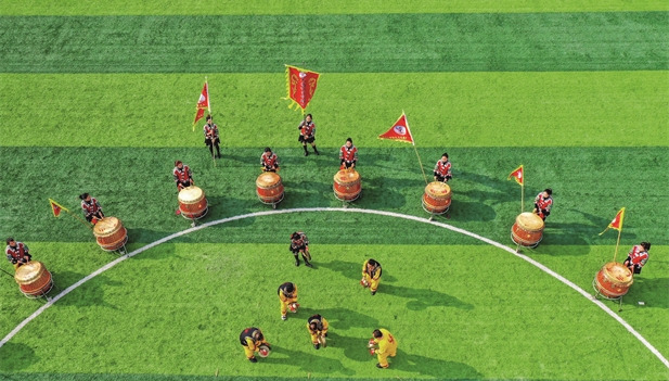 13 de enero de 2023. Artistas interpretan el tambor de guerra de Sizhou para dar la bienvenida al Año Nuevo en la aldea de Tianma, provincia de Guizhou. Xinhua EL tambor de guerra de Sizhou, también conocido como el “tambor de guerra de Yelang”, se refiere a un estilo de percusión grupal que se ha difundido en el distrito de Cengong (conocido como Sizhou en la antigüedad), ubicado en la provincia de Guizhou, y sus alrededores. Es una actividad cultural única creada conjuntamente por varios grupos, como los de las etnias miao, dong y tujia, que pretende ser un catalizador para la amistad y aunar fuerzas entre personas. Asimismo, tiene una historia que se remonta a más de 1000 años y un gran valor artístico. Las tropas del reino Yelang Su nombre se debe al hecho de haber sido utilizado por las tropas del reino Yelang para comandar ejércitos y animar a los soldados en el Período de los Estados Combatientes (475-221 a. C.). Durante las dinastías Ming (1368-1644) y Qing (1636-1912), y especialmente a mediados y finales de la última, a medida que fue aumentando la población foránea y se fueron entremezclando diversas nacionalidades y culturas, la gente comenzó a tener más necesidades espirituales y una mayor expectativa sobre la calidad de vida. Con el abandono de las armas blancas y de los métodos de lucha tradicionales, el tambor de guerra de Sizhou pasó a utilizarse para las actuaciones, con una mayor resonancia. Posteriormente, se fue convirtiendo en una actividad cultural mediante la cual los residentes locales podían divertirse. Cada año, desde la víspera del Año Nuevo chino hasta el Festival de los Faroles, batidores de gongs y tambores de diversos pueblos se reúnen para celebrar, con lo cual no solo logran transmitir la historia y la cultura heredadas de sus antepasados, sino que también ayudan a fomentar los intercambios con pueblos vecinos. Hasta la fecha, se han creado varias coreografías del tambor de guerra de Sizhou. En el famoso repertorio destacan Cientos de pájaros adorando al fénix, Pollo picoteando el arroz, Rey dragón perturbando el mar, Rinoceronte tomando un baño, Tigre descendiendo de la montaña, Rana saltando al agua, Águila extendiendo las alas sobre una roca, Urraca construyendo un nido, Mono trepando al árbol, entre otros. Una interpretación requiere de decenas a miles de personas, quienes imitan los gestos de animales, lo que da vida a un gran espectáculo visual rico en contenido. Los abanderados y tamborileros actúan con gallardía, reproducen la majestuosidad del ejército del reino Yelang en el Período de los Estados Combatientes y exhiben el espíritu invencible de la nación china. El tambor de guerra de Sizhou tiene diversas formas de expresión. Por ejemplo, en las orillas del río Long’ao, en el poblado de Shuiwei, distrito de Cengong, los residentes locales heredaron de sus antepasados una emocionante interpretación llamada Tambor de guerra de Aoshan, una de las manifestaciones del tambor de guerra de Sizhou. Atrae a multitudes Según Hu Qingbiao, oficial de enlace del Grupo de Tambores de Guerra de Aoshan de Shuiwei, en la actualidad existen más de 100 grupos de tambores en el poblado. Cada aldea tiene uno o dos cuerpos de tambores, con decenas a cientos de miembros. Dondequiera que se escuche el sonido de los tambores de guerra, se ven las multitudes que acuden para mirar. De esta forma, el tambor de guerra de Aoshan se ha convertido en un vehículo cultural con el poder de atraer y unir a las personas. El tambor de guerra de Sizhou ha sido catalogado como patrimonio cultural inmaterial a nivel distrital de Cengong. En septiembre de 2021, el distrito fue catalogado por el Departamento de Cultura Provincial de Guizhou como el “Pueblo natal del arte cultural folclórico del tambor de guerra de Sizhou”. |