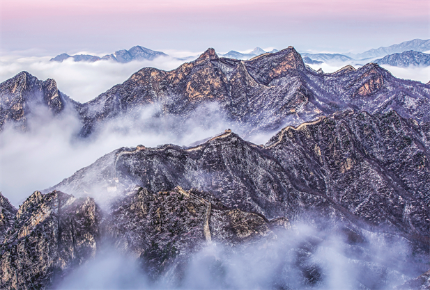 Abril de 2018. Una fotografía tomada por Yang Dong de la sección Jiankou de la Gran Muralla, en Beijing, rodeada por un mar de nubes y cubierta de nieve.