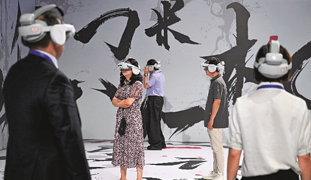 4. 4 de julio de 2025. Invitados aprecian películas virtuales durante el Festival de Cine de los Países de la Organización de Cooperación de Shanghai, llevado a cabo en el municipio de Chongqing. Xinhua