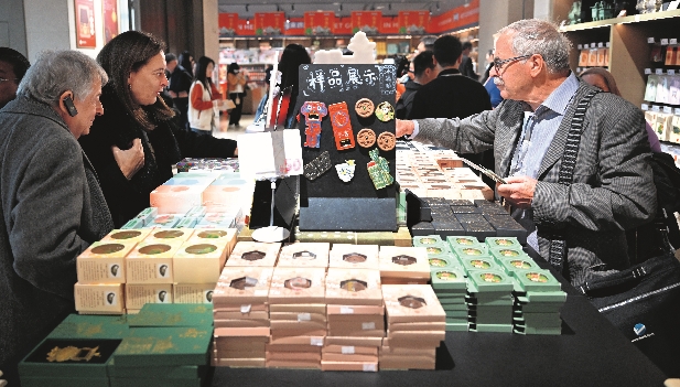 4 de noviembre de 2024. Un grupo de académicos extranjeros adquiere objetos culturales y creativos en el Museo de Henan. Xinhua |
